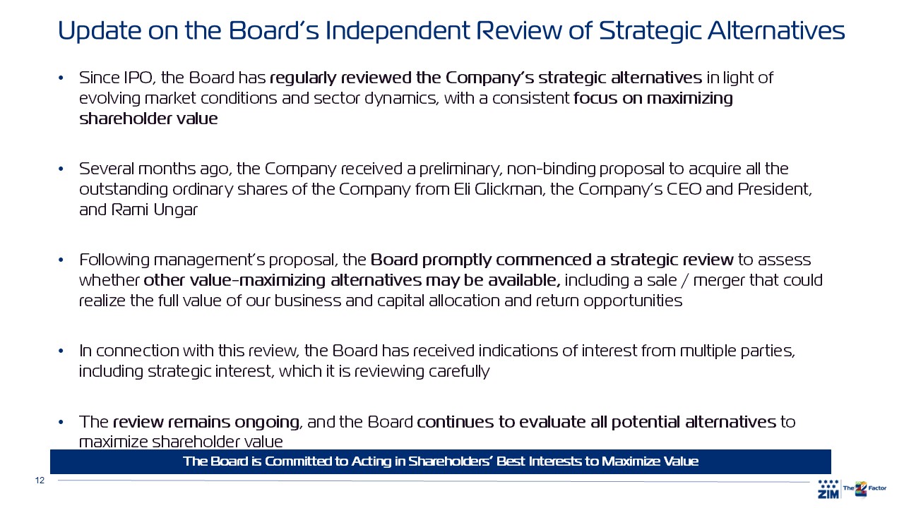 Given this interest and taking into account ZIM’s trading levels and broader sector dynamics, the Board determined that it would be prudent and in the interests of all shareholders to assess whether other