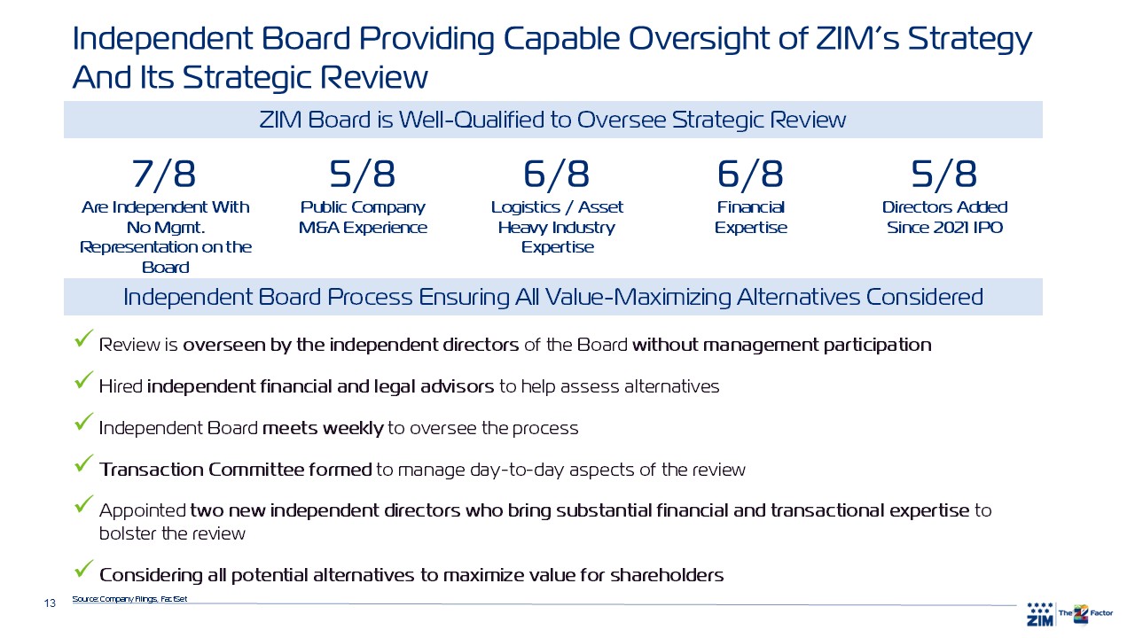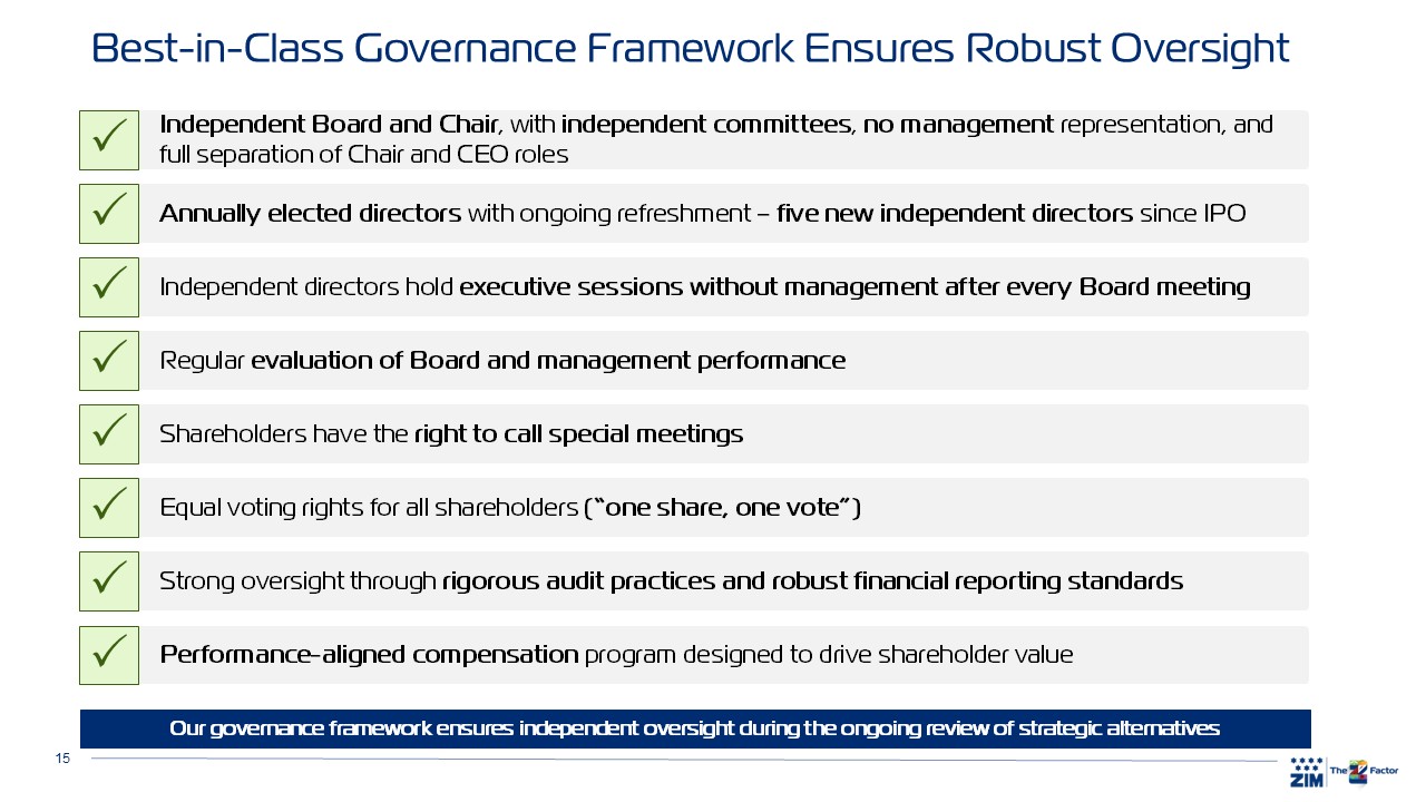 Your Board is fully capable and committed to acting in the best interests of all shareholders. We are overseeing the business to ensure that ZIM maintains the financial strength, operational flexibility, and
