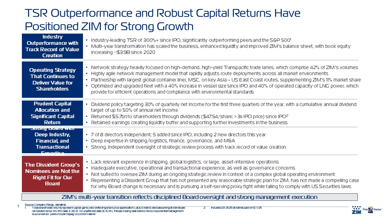 review, and why your Board unanimously believes that supporting all eight of ZIM’s nominees is essential to protecting and maximizing the value of your investment.