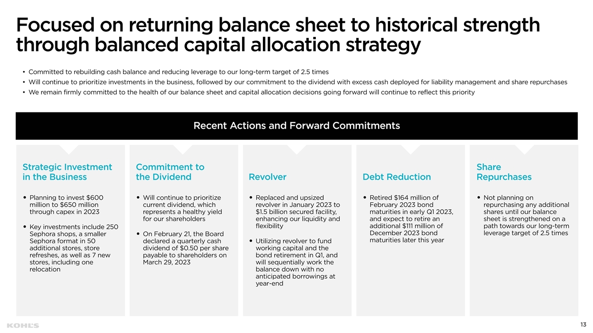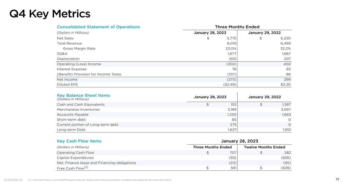 ウィスコンシン州メノモニーフォールズ - (BUSINESS WIRE)- 2023年3月1日 - コールス・コーポレーション(NYSE:KSS)は本日、2023年1月28日に終了した四半期および年間の業績を発表しました。
