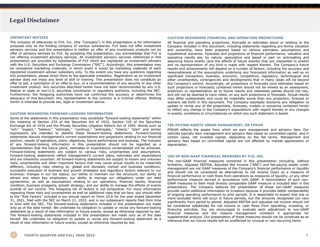 2023年3月6日、株式会社P10(以下「当社」)は、2022年第4四半期および年末の会社概要を当社ウェブサイト(https://ir.p10alts.com/)に掲載しました。2022 年第 4 四半期および年末の会社概要のコピーは、本フォーム 8-K のカレントレポートの別紙 99.2 として添付されています。