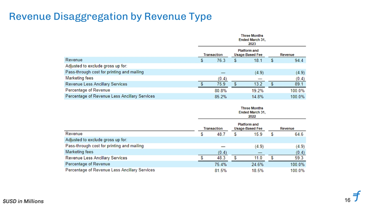 Revenue Disaggregation by Revenue Type 16 $USD in Millions