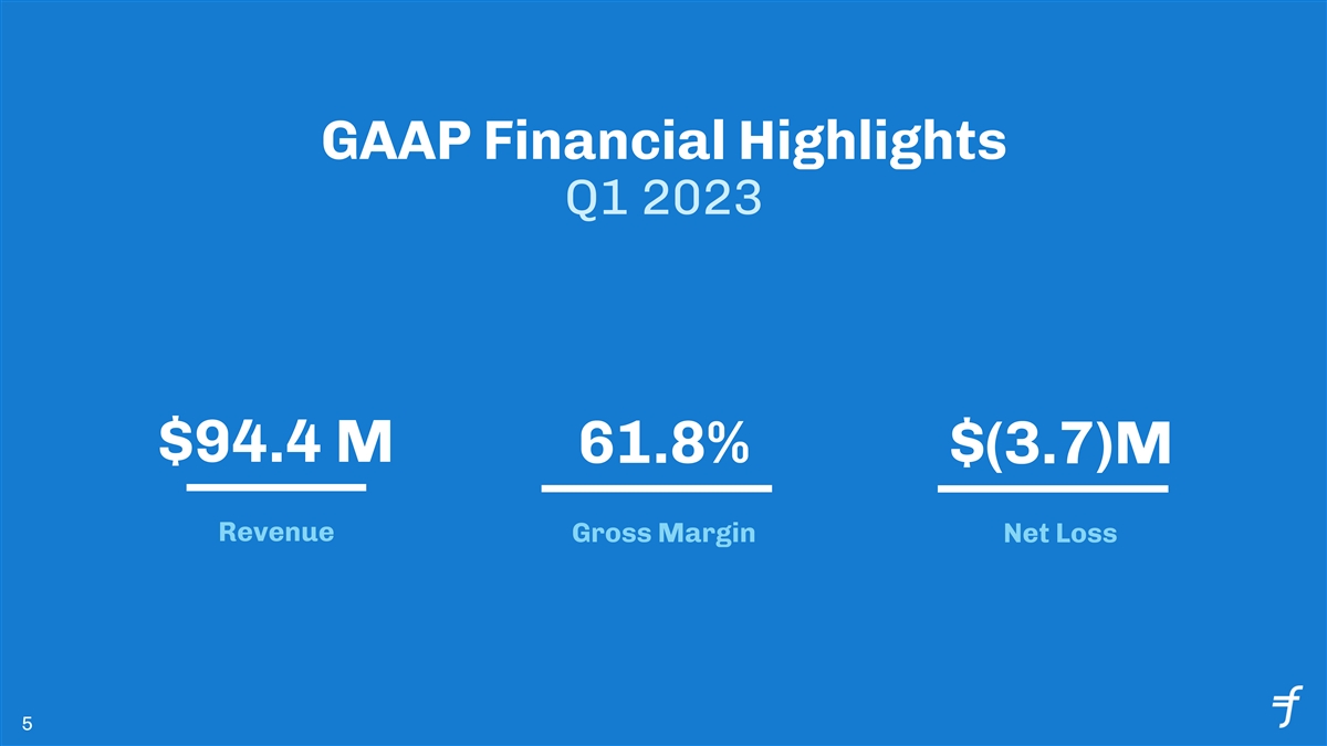 | • | Adjusted Gross Profit increased to $59.9 million, resulting in Adjusted Gross Margin of 67.2% in the first quarter of 2023, compared to Adjusted Gross Profit of $40.0 million and Adjusted Gross Margin of 67.5% in the first quarter of 2022. Prior year Adjusted Gross Profit and Adjusted Gross Margin have been recast to align with the updated methodology as described in the Key Operating Metrics and Non-GAAP Financial Measures table below. |