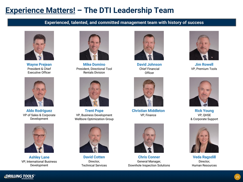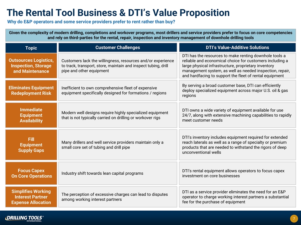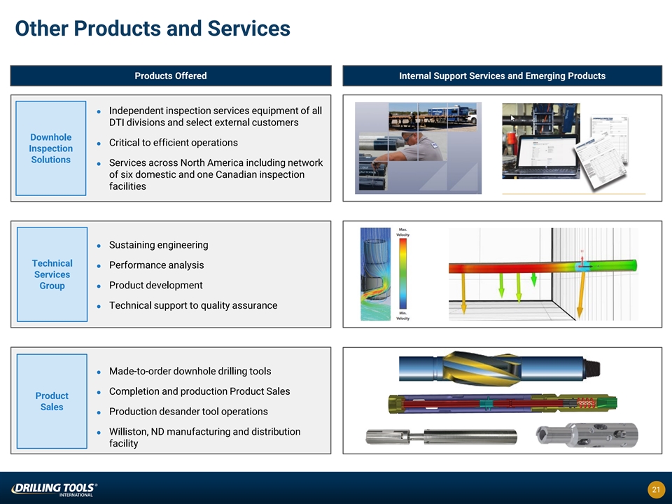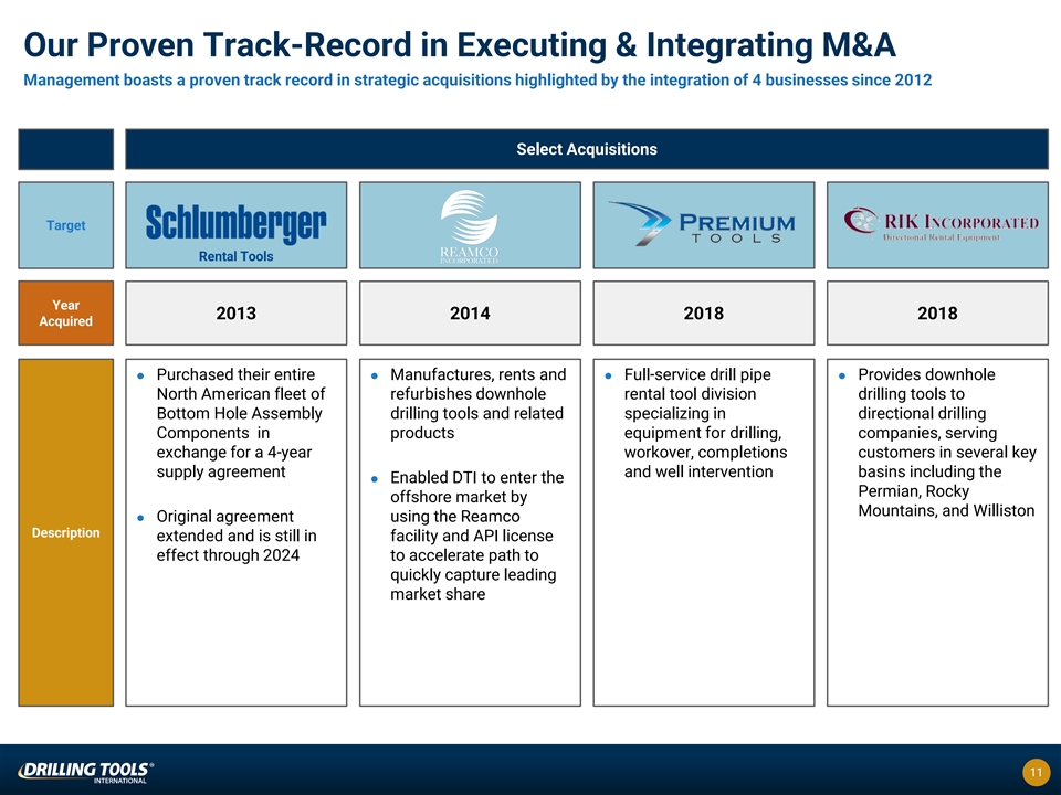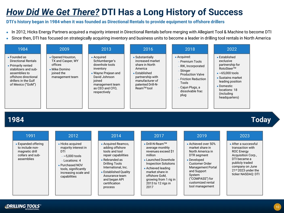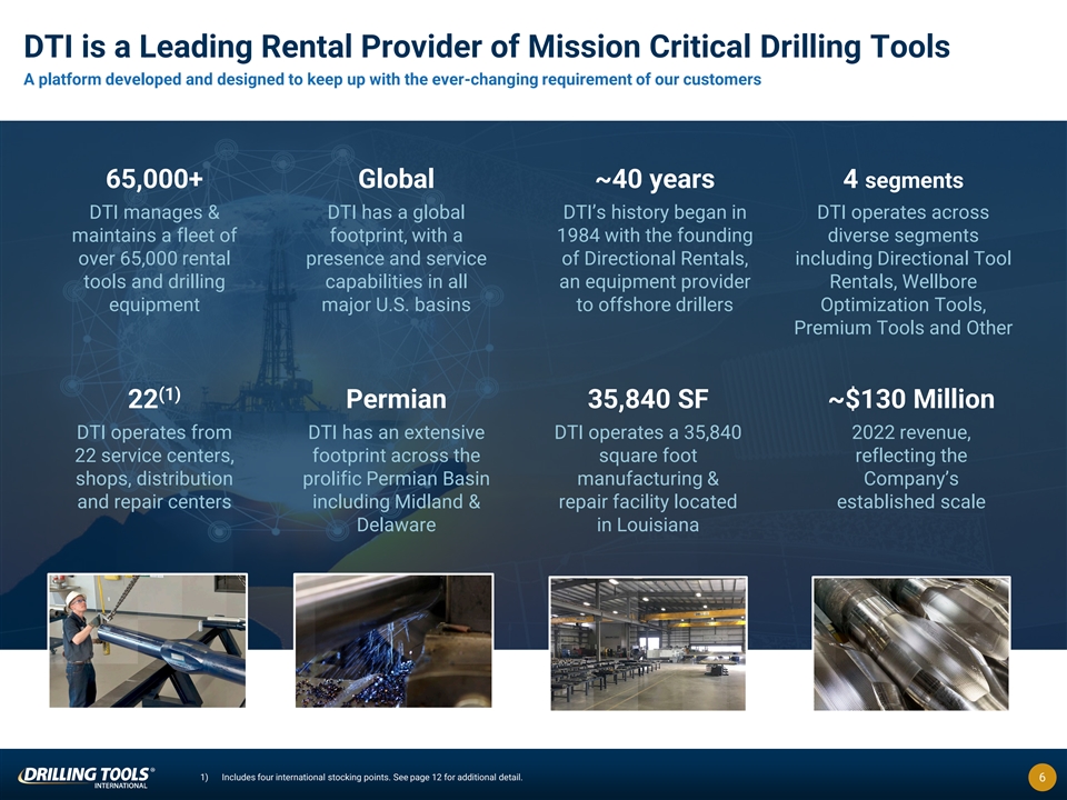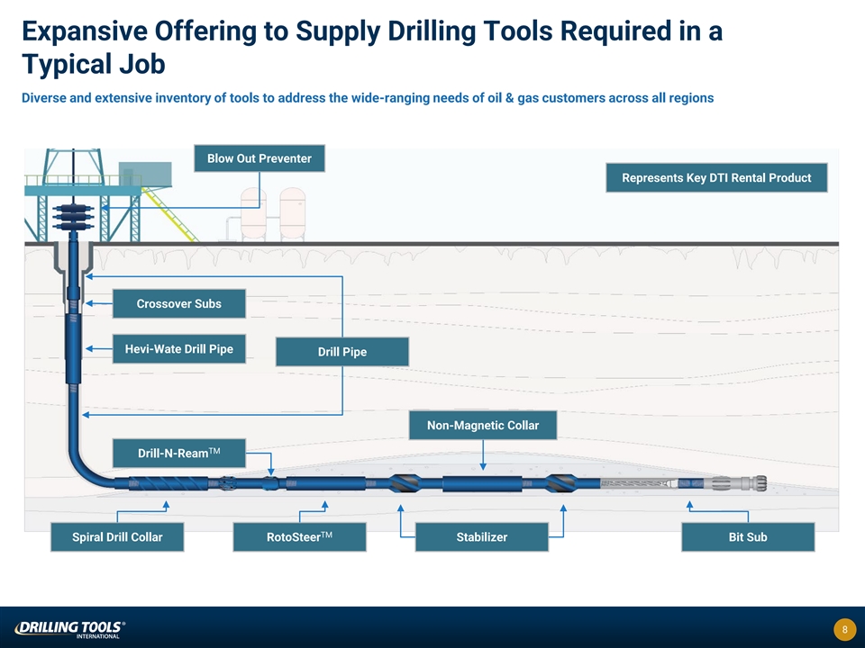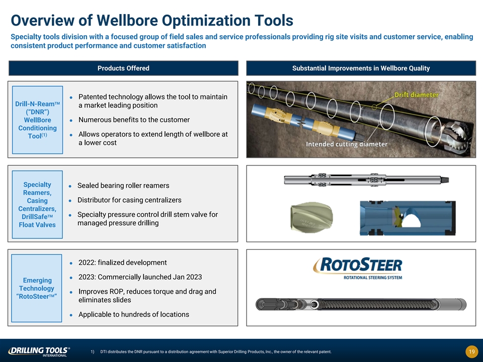 DTIは1984年に設立され、テキサス州ヒューストンを拠点とする油田サービス大手企業で、石油・天然ガス井の水平・指向性掘削に使用されるダウンホールドリリングツールの製造・レンタルを行っている。DTIは北米、ヨーロッパ、中東の22の拠点で事業を展開している。DTIについての詳細はwww.drillingtools.com。