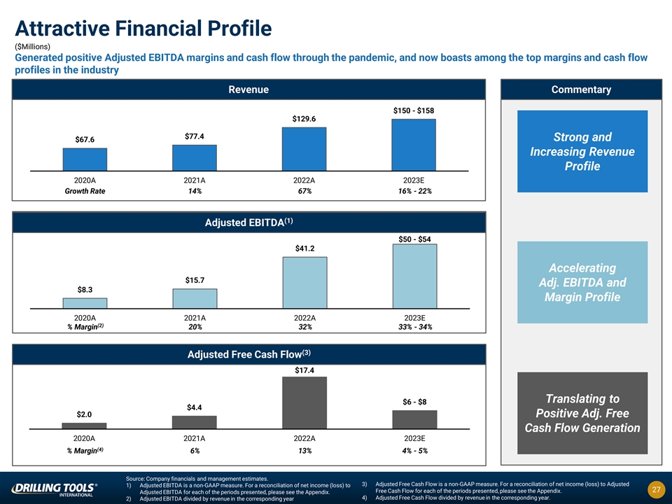 2023年度第2四半期の調整後EBITDAは1,330万ドルで、前年同期の調整後EBITDAは880万ドルであった。この増加は主に、レンタルツールの回収販売収入を含む、全部門にわたる市場活動と顧客価格の上昇によるものです。