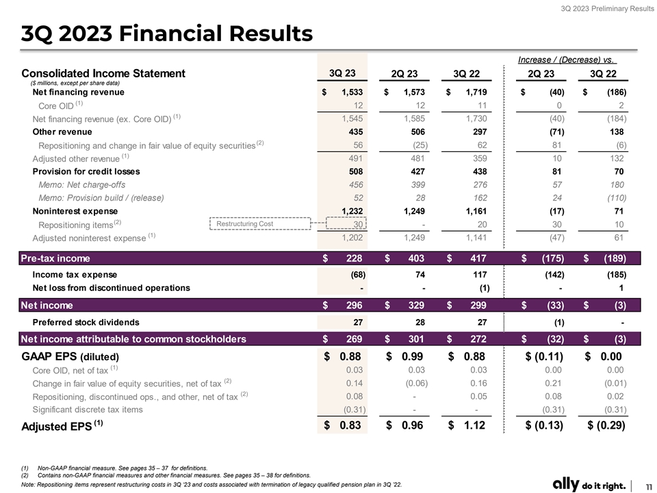 Ally Financial Reports Third Quarter 2023 Financial Results