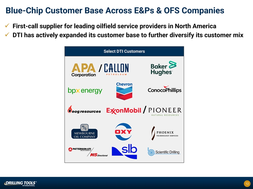 Blue-Chip Customer Base Across E&Ps & OFS Companies ✓ First-call supplier for leading oilfield service providers in North America ✓ DTI has actively expanded its customer base to further diversify its customer mix Select DTI Customers / / 12