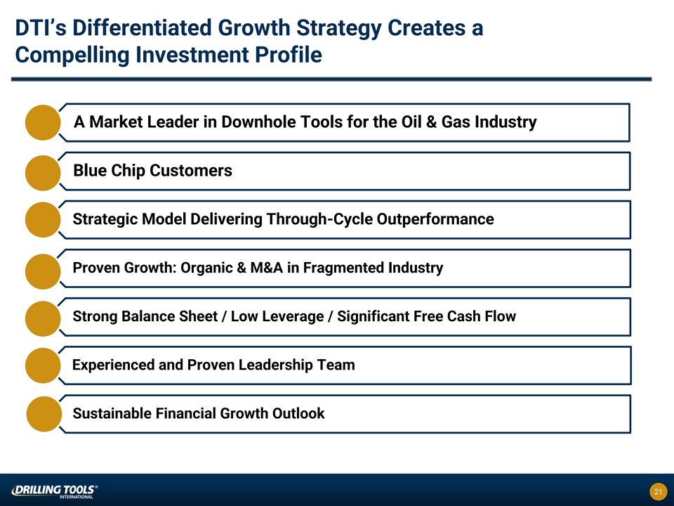 The DTI Leadership Team – Experience Matters! Experienced, talented, and committed management team with history of success 20