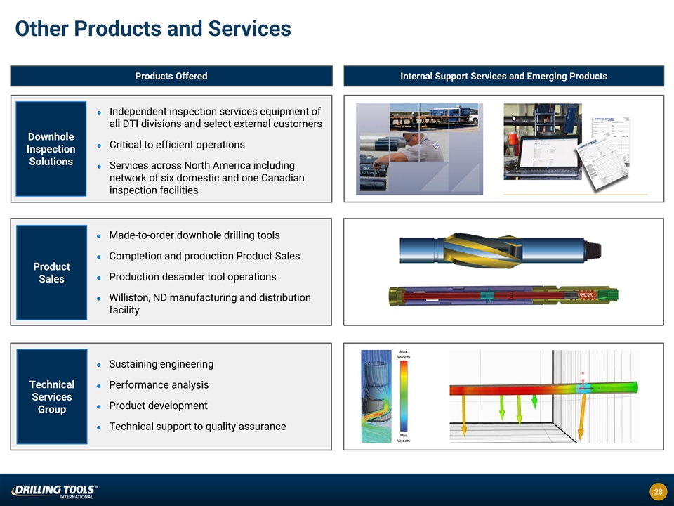 Other Products and Services Products Offered Internal Support Services and Emerging Products ⚫ Independent inspection services equipment of all DTI divisions and select external customers Downhole ⚫ Critical to efficient operations Inspection Solutions ⚫ Services across North America including network of six domestic and one Canadian inspection facilities ⚫ Made-to-order downhole drilling tools ⚫ Completion and production Product Sales Product ⚫ Production desander tool operations Sales ⚫ Williston, ND manufacturing and distribution facility ⚫ Sustaining engineering Technical ⚫ Performance analysis Services ⚫ Product development Group ⚫ Technical support to quality assurance 28