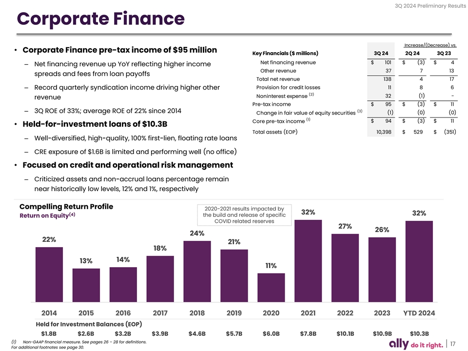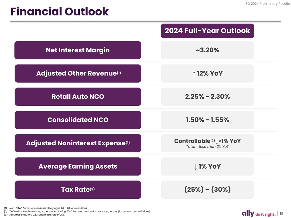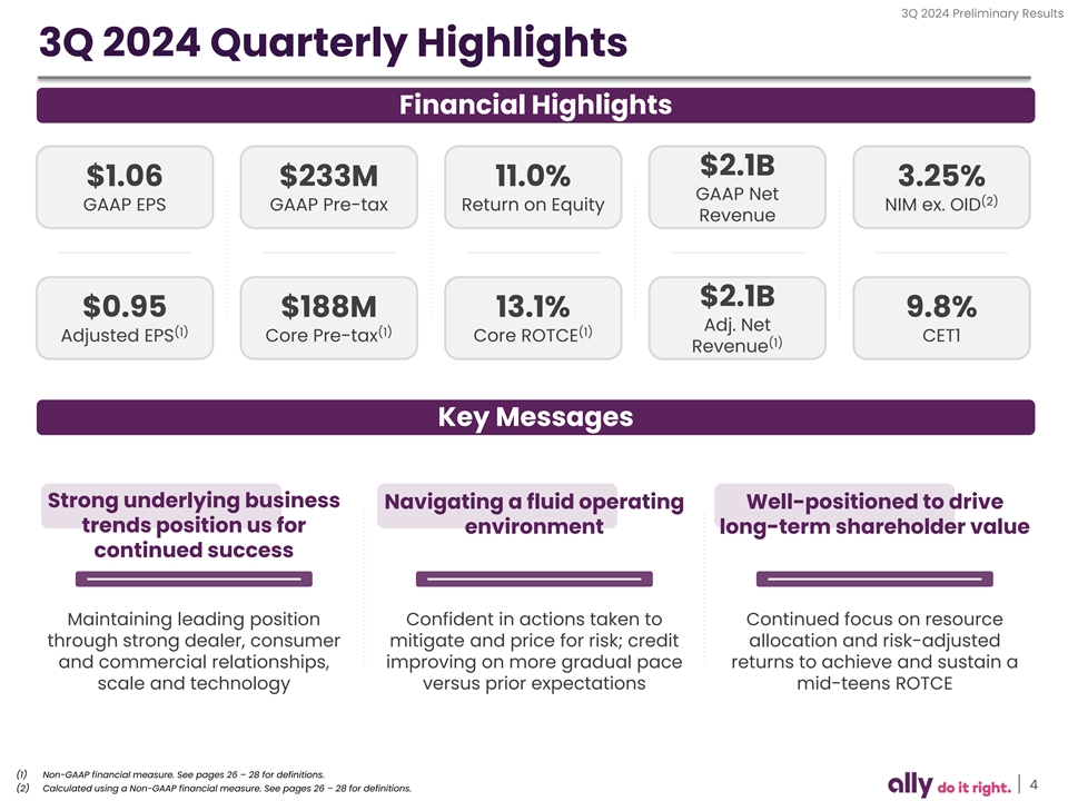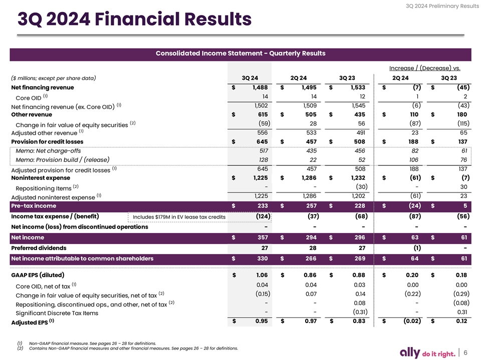 アリー・ファイナンシャル、2024年第3四半期決算を発表