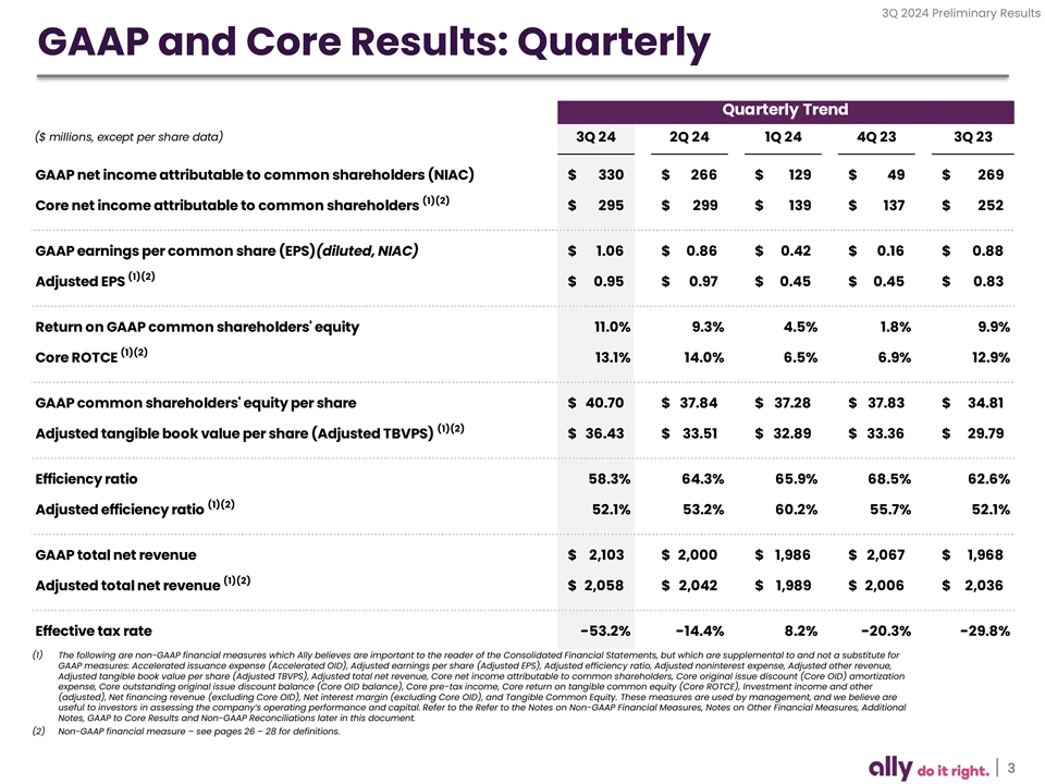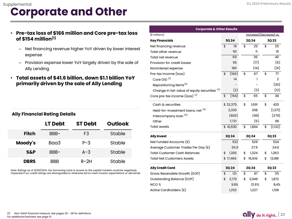 アリー・ファイナンシャル、2024年第3四半期決算を発表