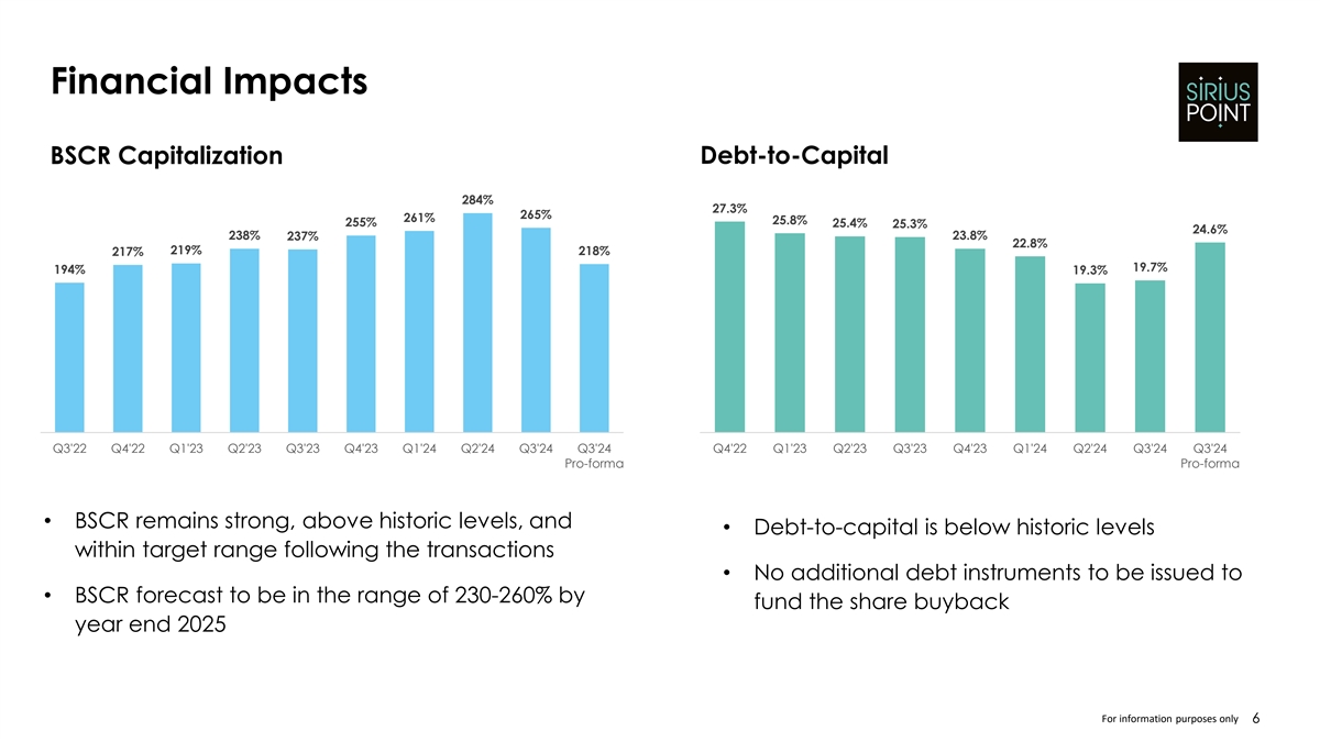 SiriusPoint has financed the transaction entirely through its existing capital. Its proforma Bermuda Solvency Capital Ratio at the end of Q3 remains strong at 218% after the payments.
