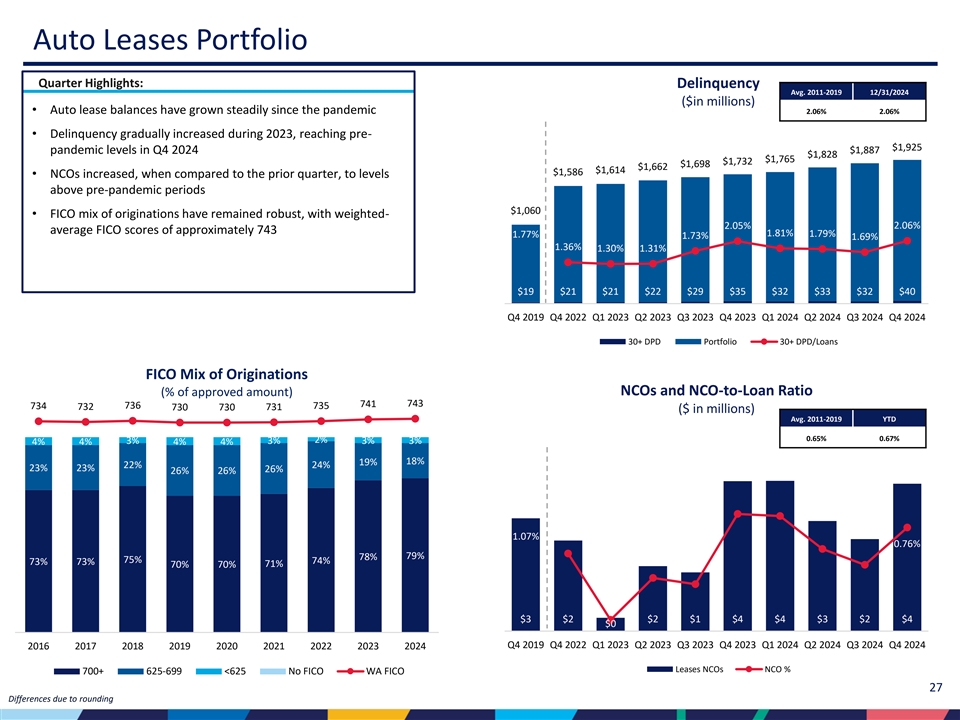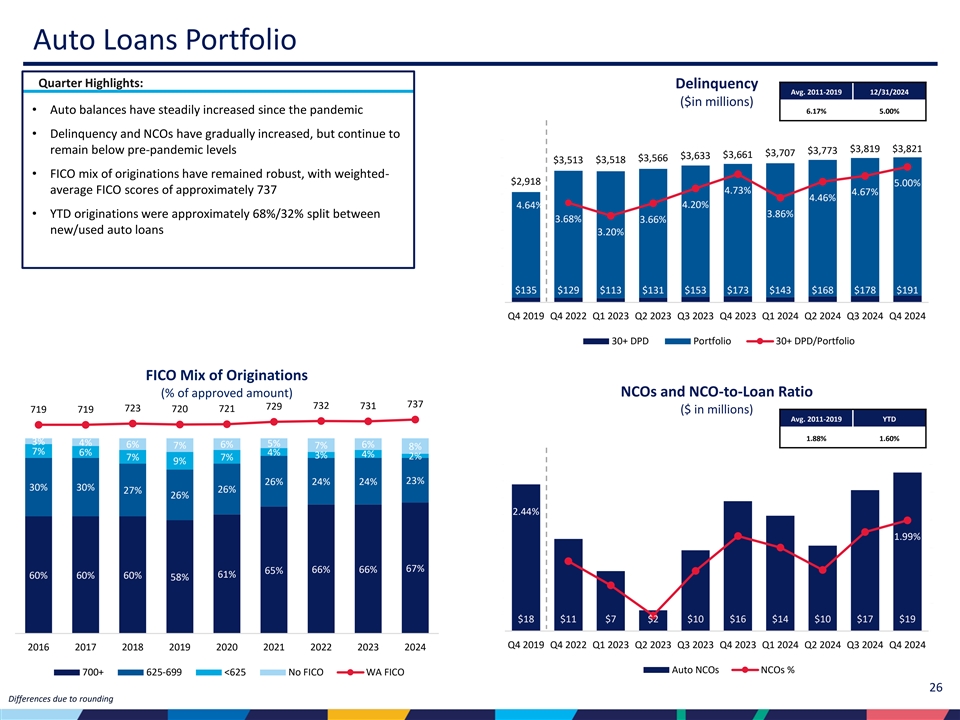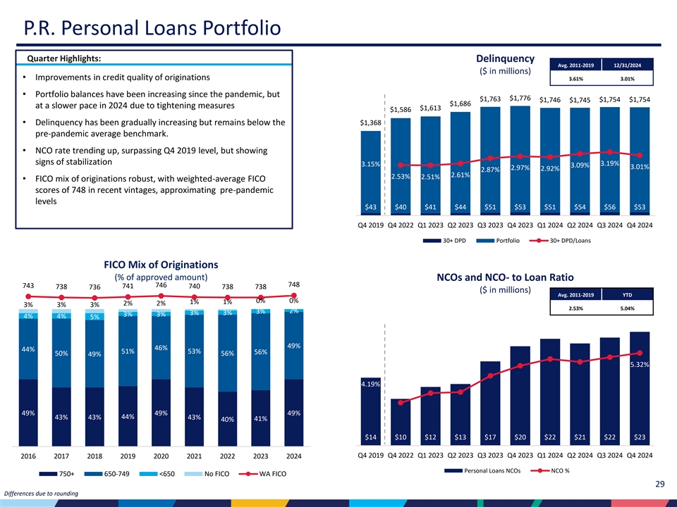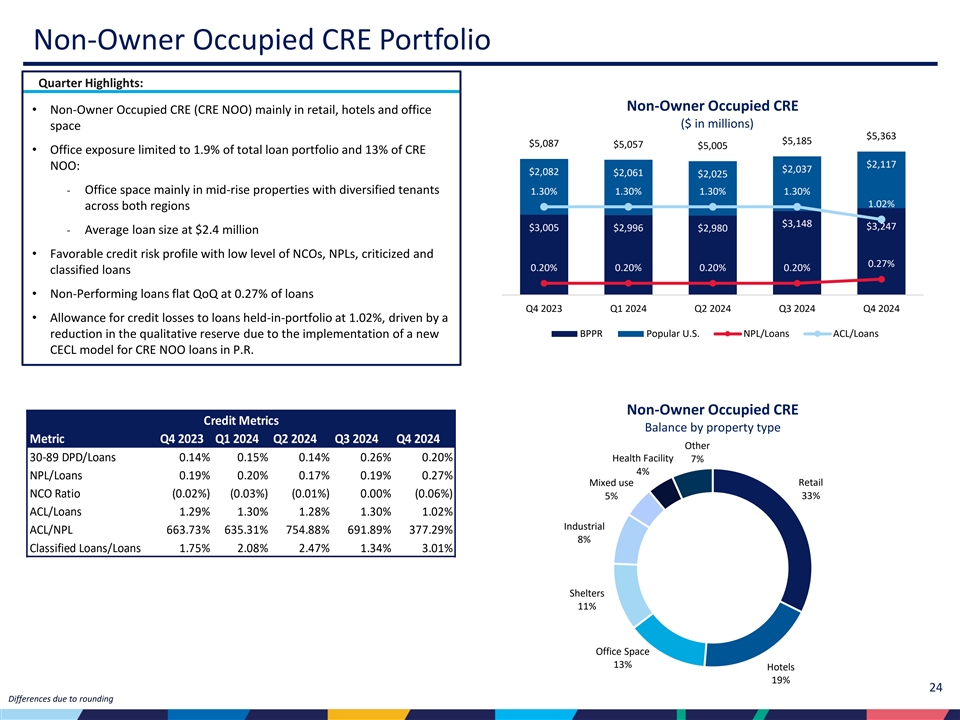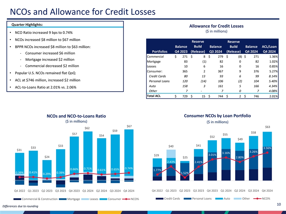 | • | 売却予定の貸出金を除くポートフォリオの貸出金は、2024年第3四半期から9億1,270万ドル増の371億ドル、四半期平均貸出残高は7億8,100万ドル増加した。 |