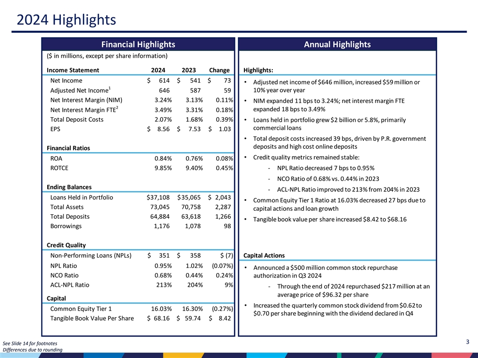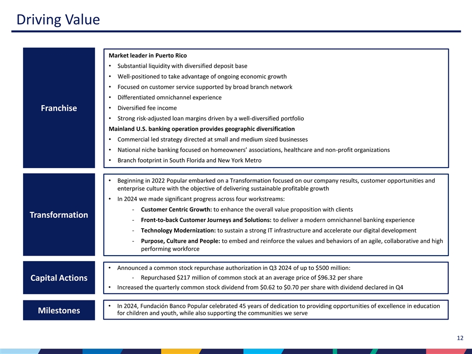 年間を通した従業員の努力と献身に感謝するとともに、プエルトリコ経済の業績改善とフランチャイズの強みを引き続き活用することで、2025年の見通しについても楽観視しています。"