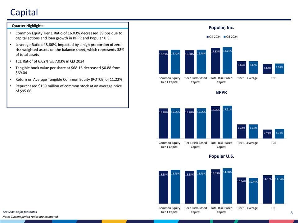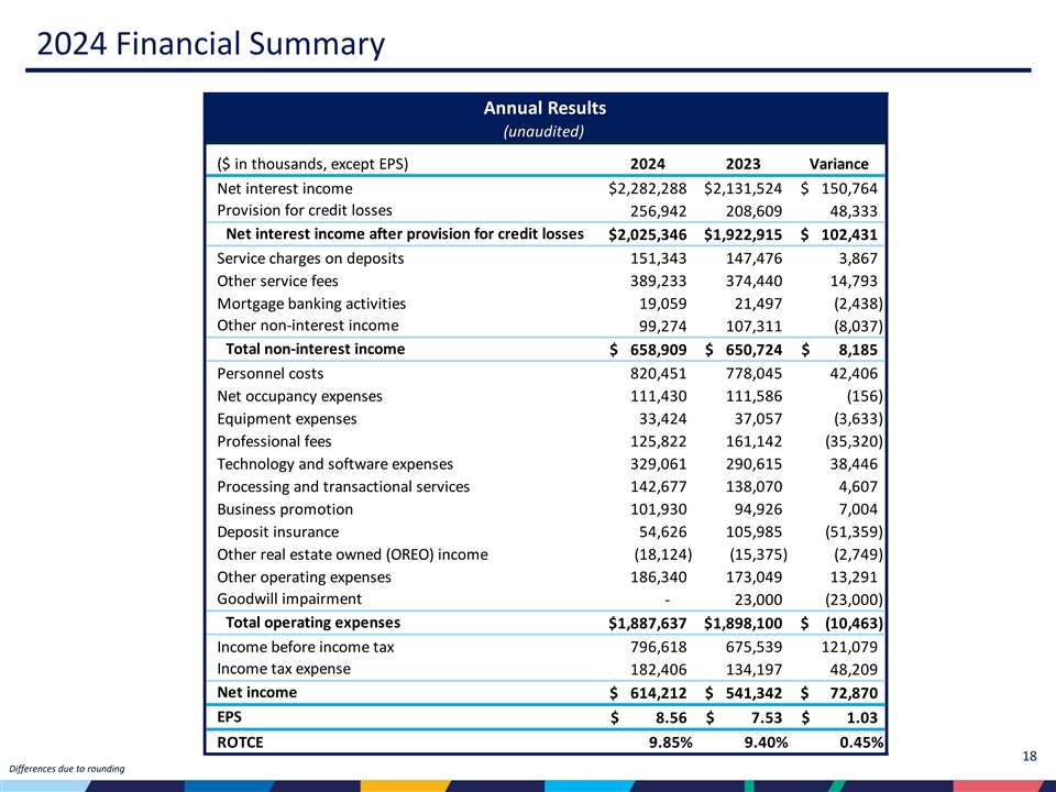 | • | 2024年12月31日現在の普通株式Tier1比率は16.03%、1株当たり普通株式は79.71ドル、1株当たり有形簿価は68.16ドルで、2024年第3四半期から0.88ドル減少した。 |