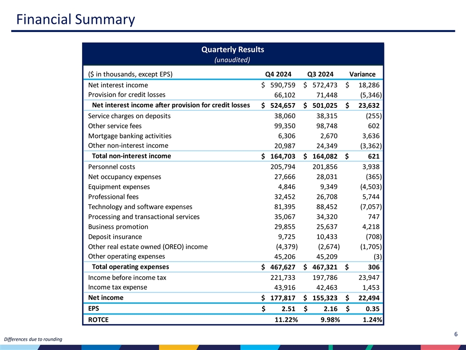 | • | 2024年の当期純利益は6億1,420万ドル(2023年は5億4,130万ドル)。FDIC特別査定に関連して発生した費用および過年度の源泉徴収税額を除いた調整後の当期純利益は、2023年の5億8,660万ドルに対し、2024年は6億4,610万ドルでした。 |