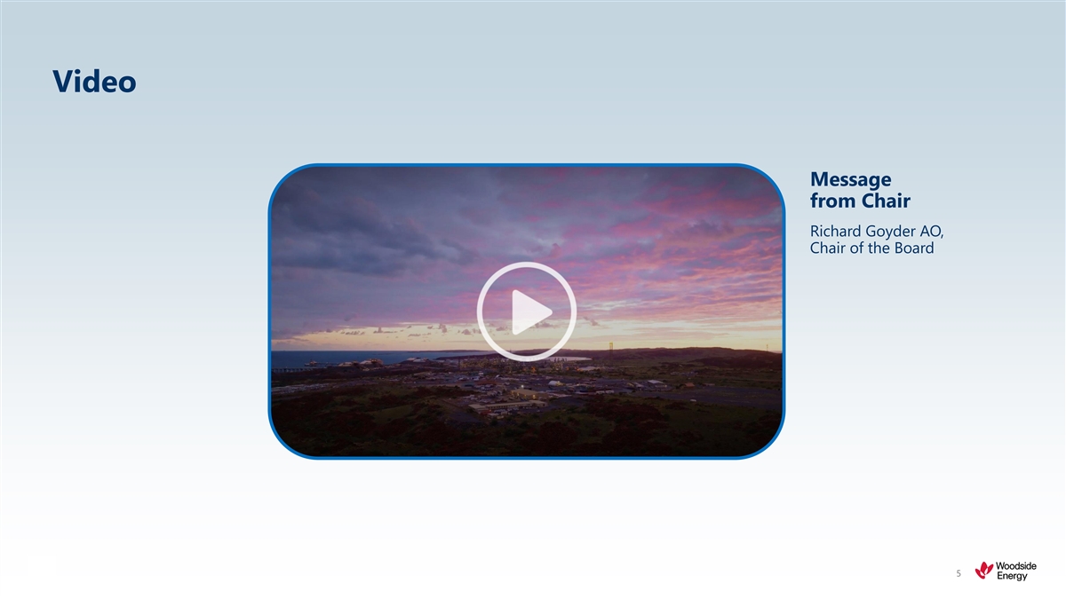 Agenda Marcela Louzada, Welcome Vice President Investor Relations Richard Goyder AO, Message from Chair Chair of the Board Meg O’Neill, CEO presentation CEO & Managing Director Meg O’Neill & Q&A Marcela Louzada 4