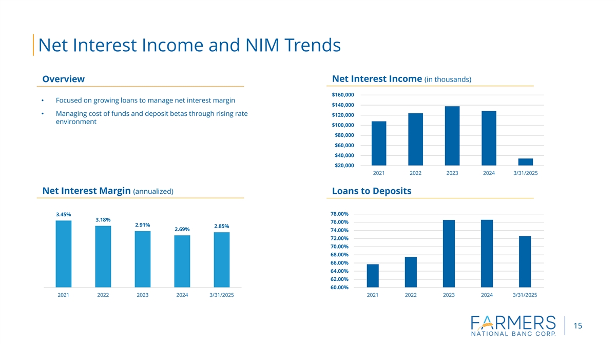 | • | 純金利マージンは2024年第1四半期の2.70%から2025年第1四半期の2.85%へ上昇 |