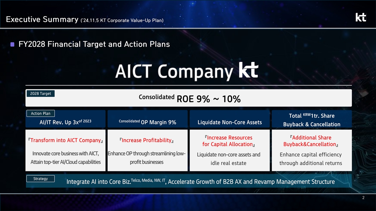 Executive Summary ('24.11.5 KT Corporate Value-Up Plan) FY2028 Financial Target and Action Plans AICT Company 2