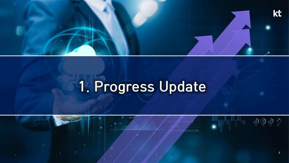 Executive Summary ('25.1Q Financial Progress) '23 ROE 6.1 '24 year ROE * % 6.8% (2.9%) Consolidated AI/IT Revenue OP Margin Share Buyback/Cancellation (Unit: KRW trillion) Target Target (Unit: KRW trillion) ** Target 19% + Cumulative 1.00 10.1% 9% * 6.7 % 1.1 6.3 % 1.0 7% 6% 3.1% 0.3 0.25 7% 0.0 0.0 '23 '24 '25.1Q '28(T) '23 '24 '25.1Q '28(T) '23 '24 '25.1Q '28(T) ‘25.02~’25.08 3 ※ Buyback in progress based on trust contract * Excluding one-time cost (KRW 1tr) ** Proportion of service revenue (standalone)
