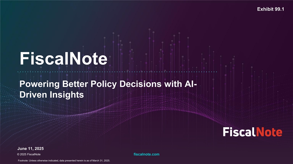 Exhibit 99.1 FiscalNote Powering Better Policy Decisions with AI- Driven Insights June 11, 2025 © 2025 FiscalNote fiscalnote.com Footnote: Unless otherwise indicated, data presented herein is as of March 31, 2025.