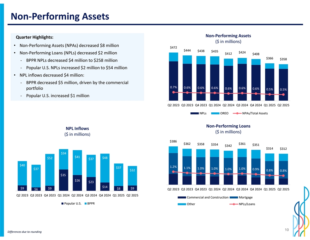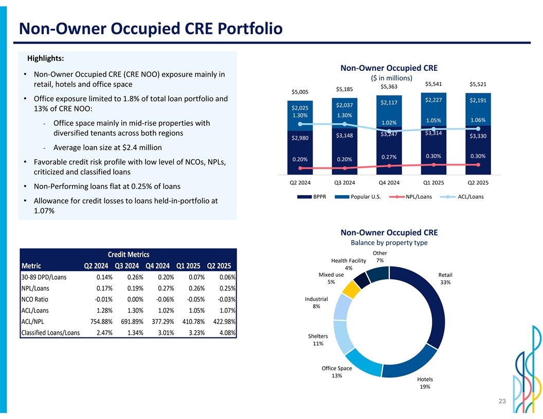 「ポピュラー社の社長兼最高経営責任者(CEO)であるハビエル・D・フェレールは、次のように述べています。「当行は第 2 四半期に好調な業績を達成し、純利息収益の増加、純利鞘の拡大、健全な貸出と預金の増加、信用の質の向上を達成しました。「ポピュラー社の社長兼最高経営責任者(CEO)であるハビエル・D・フェレールは次のように述べています。私は深い責任感を持って CEO の職務に就くとともに、このような有能で献身的なチームを率いる特権を純粋に光栄に思います。