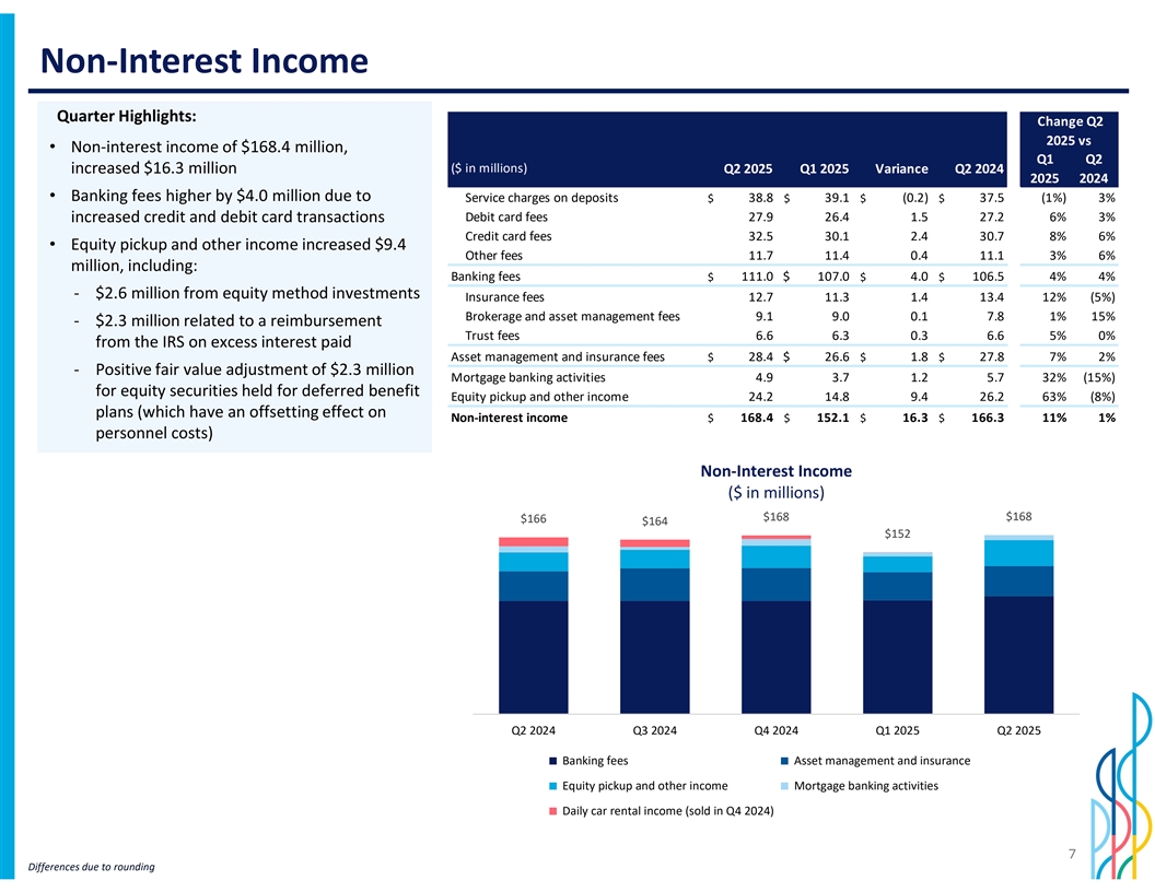 | • | 2025年第2四半期の非金利収入は1億6,850万ドル(前年同期:1億5,210万ドル)。 |