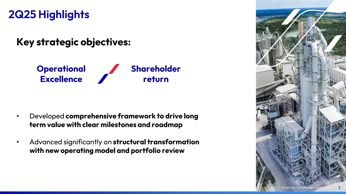 2Q25 Highlights Key strategic objectives: Operational Shareholder Excellence return • Developed comprehensive framework to drive long term value with clear milestones and roadmap • Advanced significantly on structural transformation with new operating model and portfolio review Brooksville Plant, Florida, United States 3 3