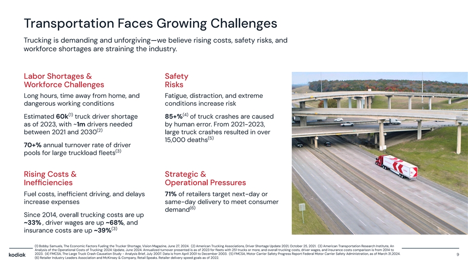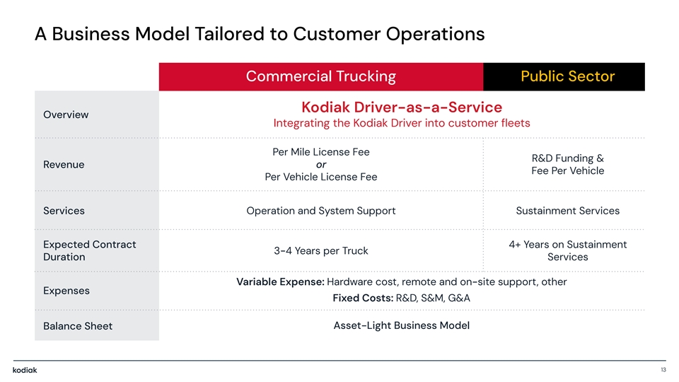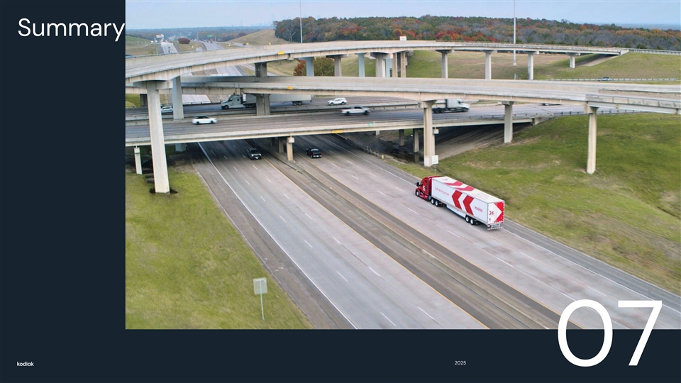 Delivering in a $4t+ Market that Keeps the World Moving Commercial Trucking Opportunity Kodiak Trucking Applications $4t+ $900b+ Global Commercial US Commercial (1) (2) Commercial Trucking Public Sector Trucking Market Trucking Market (1) Verified Market Research, Road Freight Transportation Market Size and Forecast 2023-2031, July 2024. TAM presented is for the global road freight transportation market, which includes light commercial 10 vehicles and heavy commercial vehicles, as of 2023. (2) American Trucking Associations, ATA U.S. Freight Transportation Forecast to 2035, January 2025. TAM presented is as of 2024.