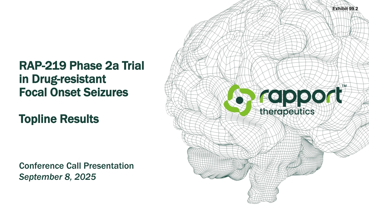 Exhibit 99.2 RAP-219 Phase 2a Trial in Drug-resistant Focal Onset Seizures Topline Results Conference Call Presentation September 8, 2025