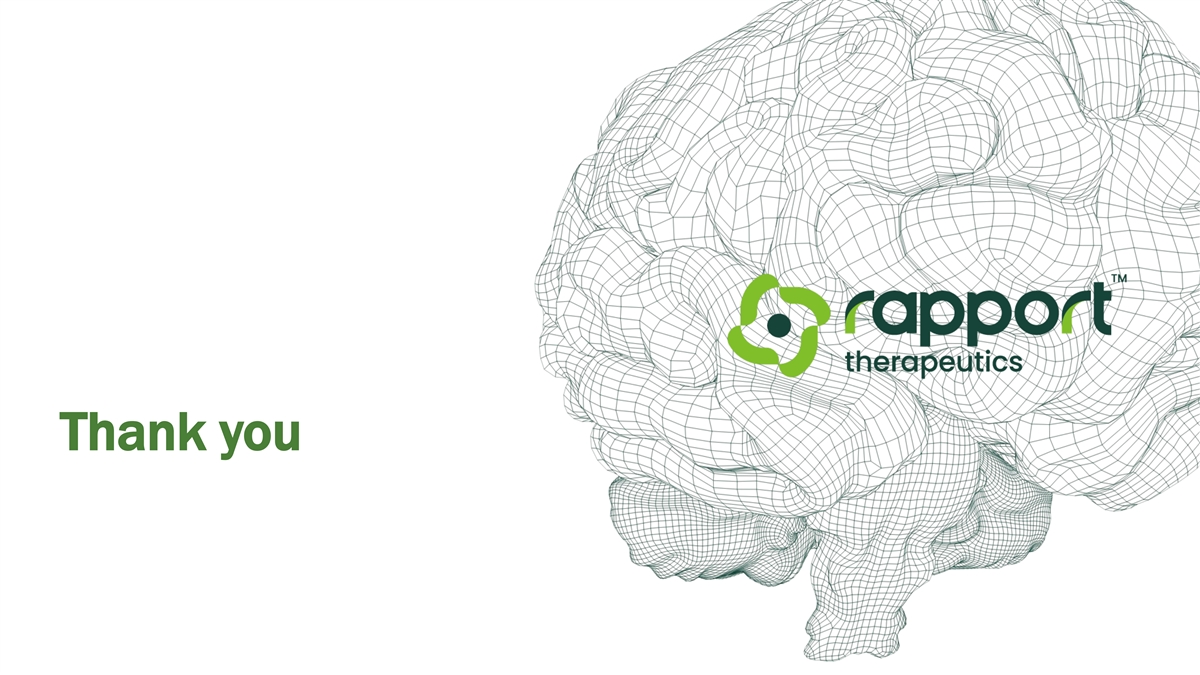 Rapport plans to hold an end-of-Phase 2 meeting with the U.S. Food and Drug Administration in the fourth quarter of 2025. The 8-week follow-up period of the Phase 2a trial is currently ongoing with additional efficacy analyses and 8-week follow up results expected in 2026. By the end of 2025, Rapport plans to initiate an open-label long term safety trial to allow patients enrolled in the Phase 2a trial to continue on RAP-219. Preliminary results of the trial are expected in the second half of 2026. The Company plans to advance RAP-219 into two Phase 3 pivotal trials in the third quarter of 2026.