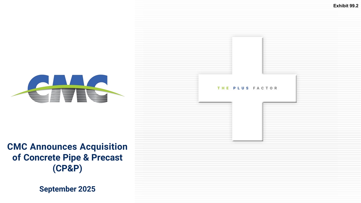 Exhibit 99.2 CMC Announces Acquisition of Concrete Pipe & Precast (CP&P) September 2025