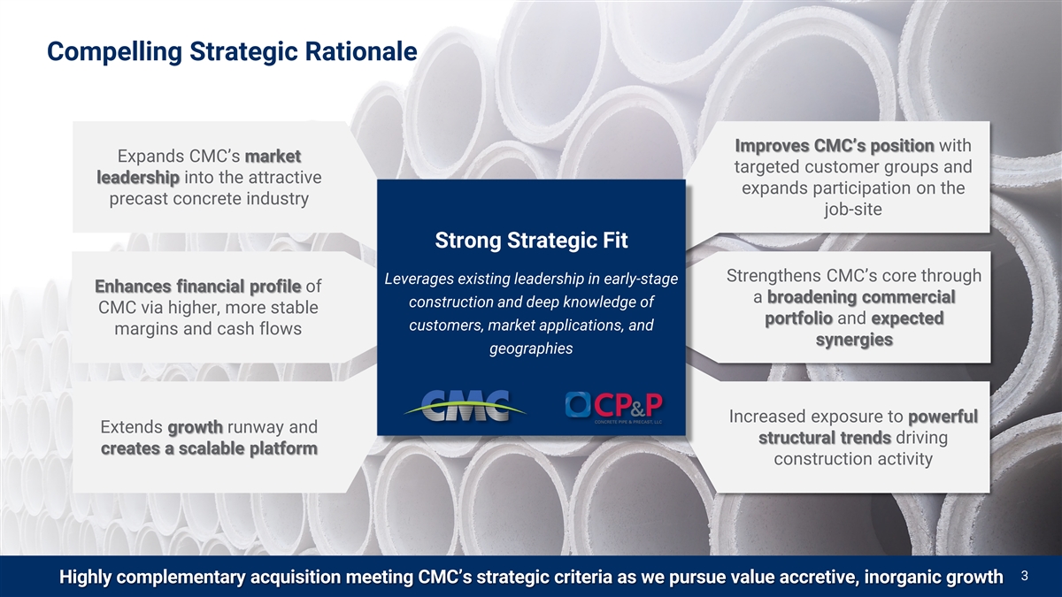 CMC TO ACQUIRE CONCRETE PIPE & PRECAST, LLC