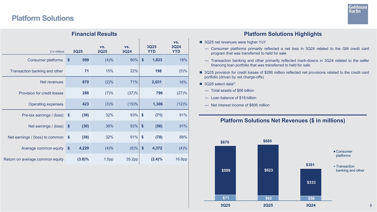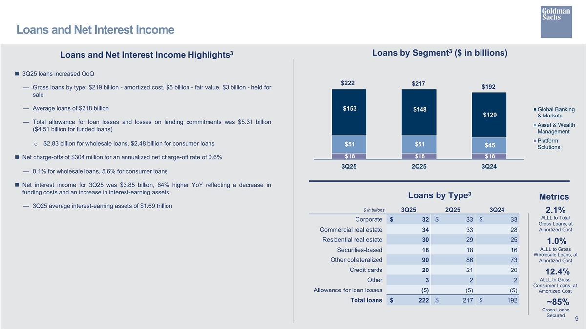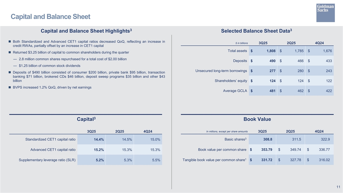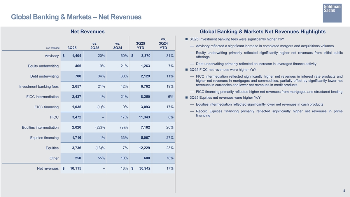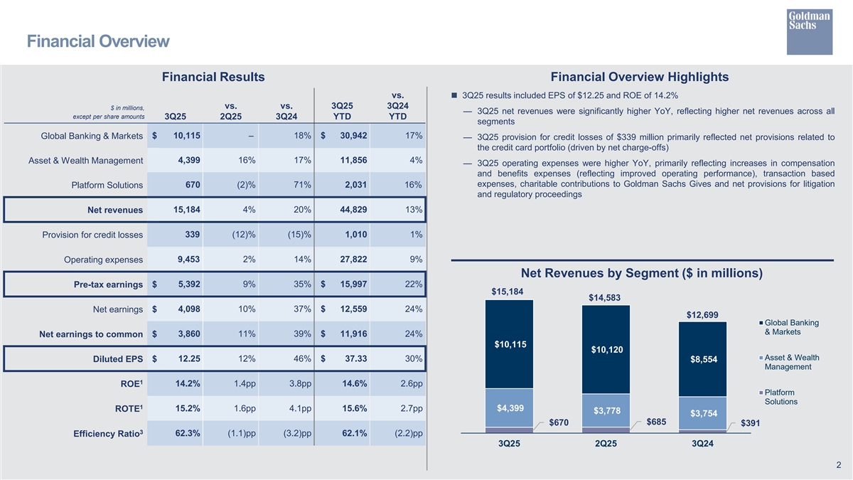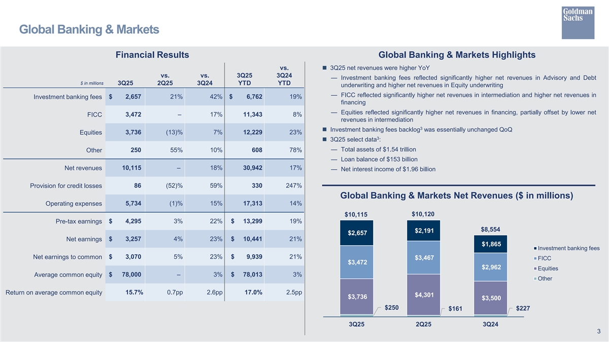 | グローバル・バンキング&マーケッツ部門の 2025 年第 3 四半期の純収入は 101.2 億ドルとなり、2024 年第 3 四半期を 18%上回り、2025 年第 2 四半期と比べほぼ横ばいであった。