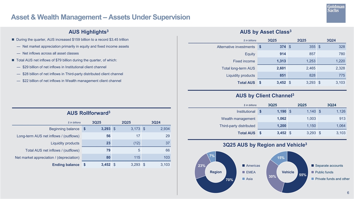 これは主に、M&A の完了件数の大幅な増加を反映したアドバイザリー業務、およびレバレッジド・ファイナンス業務の増加 を主因とした債券引受業務の純収入が大幅に増加したことによるものです。株式引受業務の純収入は、主に新規株式公開に牽引されて増加した。投資銀行業務の手数料残高2 は、2025 年第 2 四半期末と比べほぼ横ばい、2024 年 12 月末と比べ増加した。