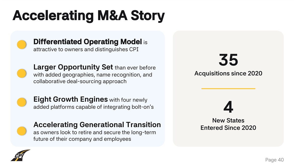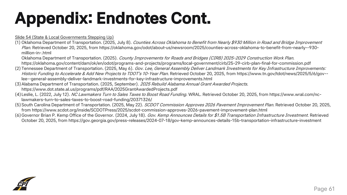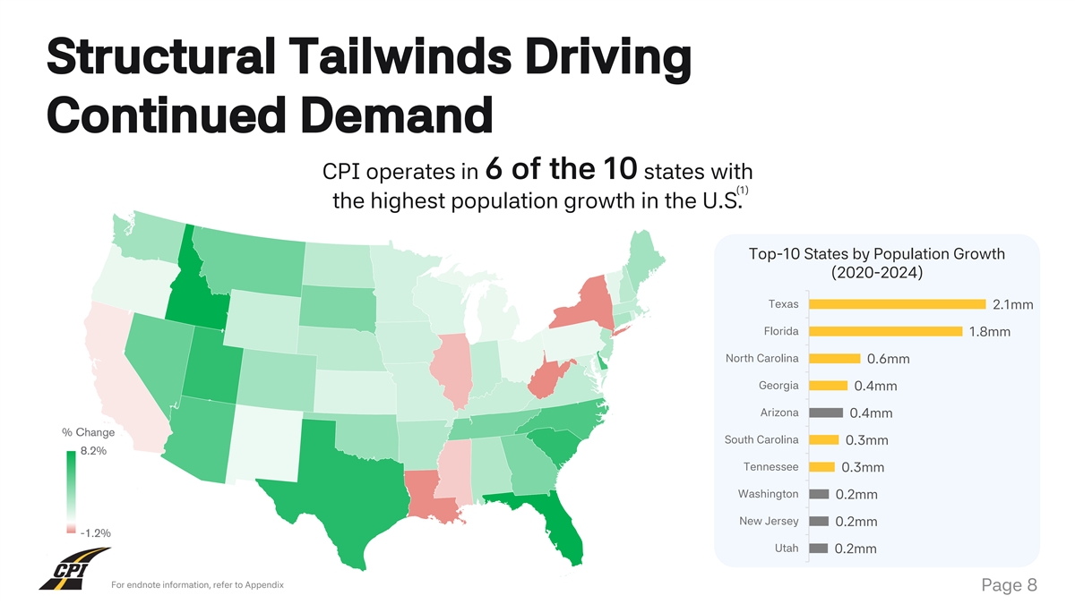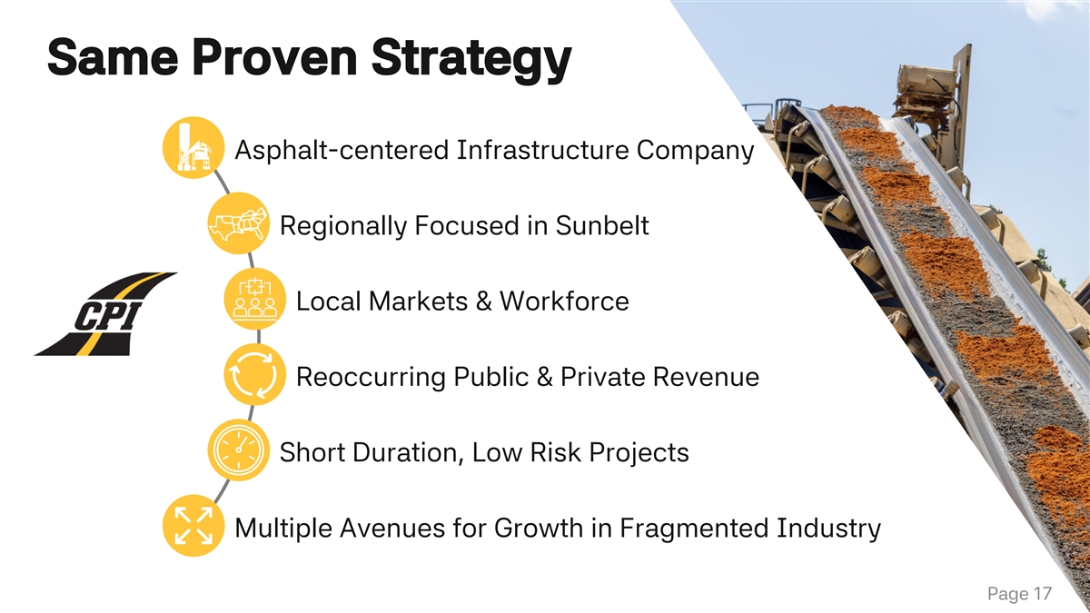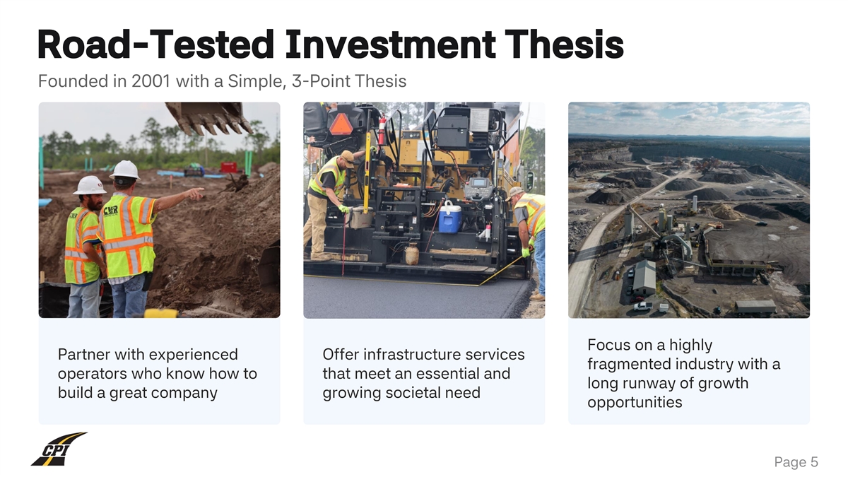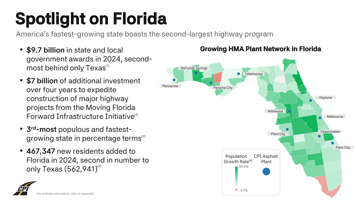 スミスは次のようにコメントした。「わが社の系列会社が戦略的成長計画を有機的に、あるいは買収を通じて実行し続けるなかで、わが社は引き続き、わが社の市場における事業業績と戦略的入札の強化、建設資材とサービスの垂直統合機会の拡大、組織全体の企業コストの縮小による利幅の拡大に注力していく。当社の事業は、サンベルト地帯における輸送資金調達プログラムや健全な商業市場によってもたらされる機会から引き続き恩恵を受けると確信しています。当社の2026年度の見通しは、再び力強い成長が見込まれる年であり、すべてのステークホルダーのために価値を築き続けるCPIの将来について強気である。"
