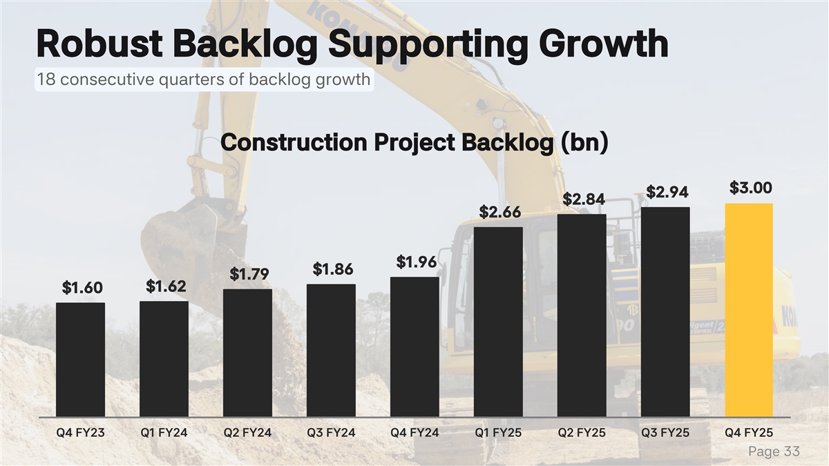 プロジェクト受注残は、2025年6月30日時点では29億4,000万ドル、2024年9月30日時点では19億6,000万ドルであったのに対し、2025年9月30日時点では約30億ドルとなる見込みである。
