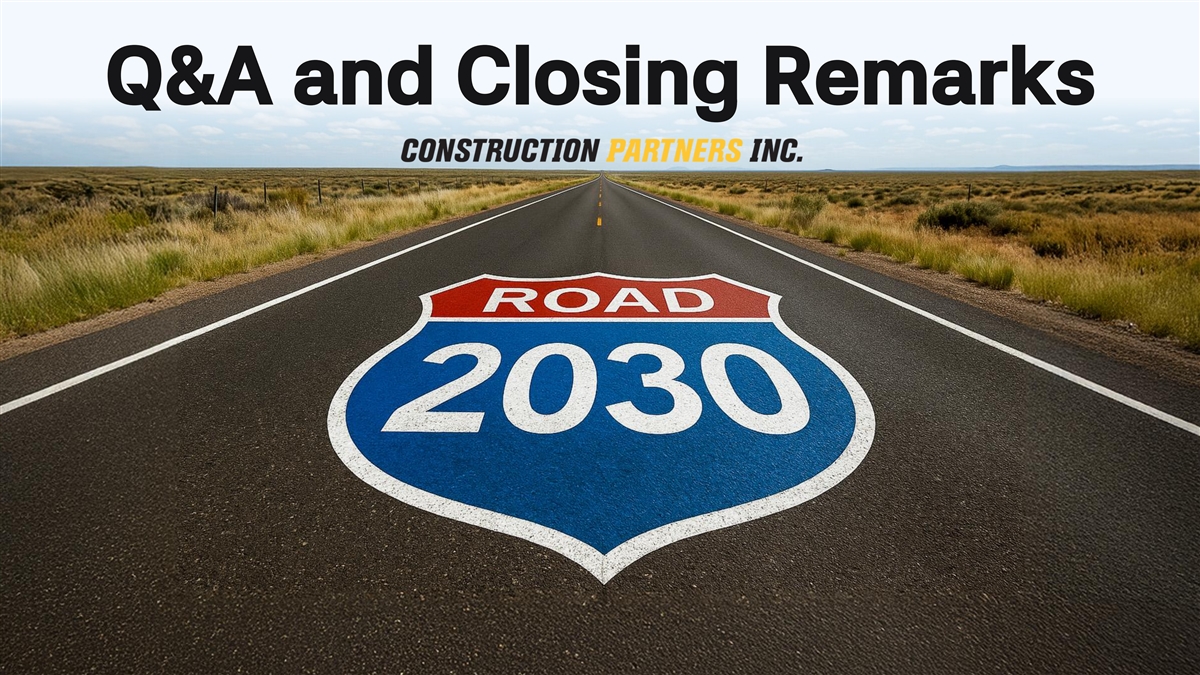 当社のアナリスト・デイ・イベントは、明日2025年10月22日午前10時(米国東部時間)より、ライブ音声ウェブキャスト(スライド付き)を通じてオンラインでご覧いただけます。コンストラクション・パートナーズ・アナリスト・デイのウェブキャストには、コンストラクション・パートナーズの投資家向けウェブサイト(https://ir.constructionpartners.net/)の「イベント&プレゼンテーション」セクションからご参加いただけます。ウェブキャストと付随するプレゼンテーションの再放送は、ライブイベントの終了後、投資家向けウェブサイトにてご覧いただけます。