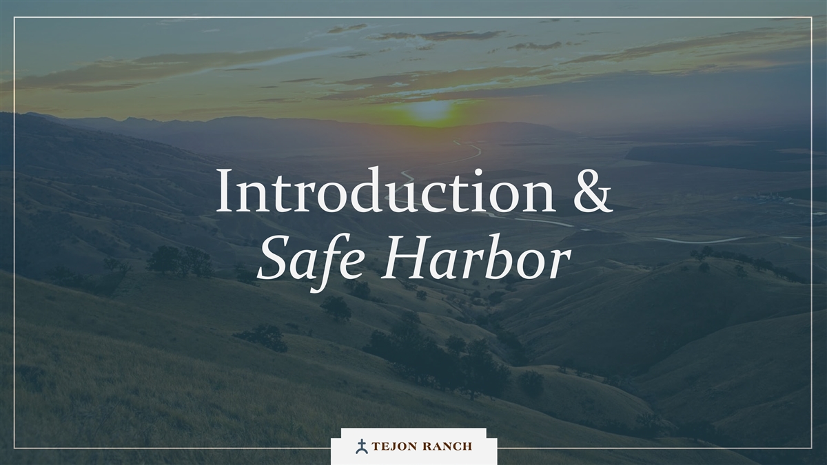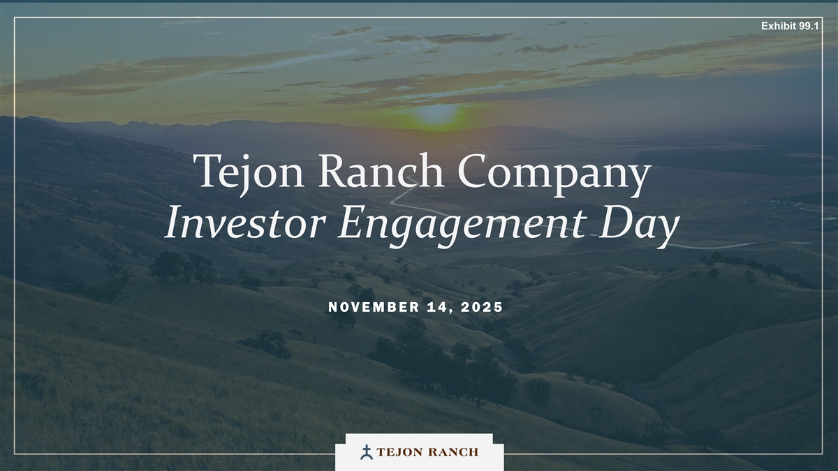Exhibit 99.1 Tejon Ranch Company Investor Engagement Day NOVEMBER 14, 2025