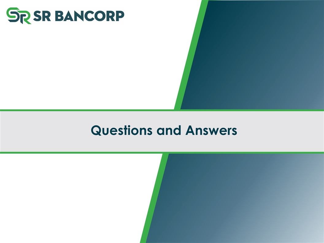 Overview of SR Bancorp, Inc. Stockholder Information (NASDAQ: SRBK) Ownership Market Information as of 11/14/25 Institutional 29.0% Total Market Cap (mm) $131.5 1 Insider* 17.6% Tangible Book Value $165,540 Tangible Book Value / Share $19.08 Dividend Yield 1.32% Price / Tangible Book 79% LTM Dividend Payout 27.78% Price / LTM EPS 28.1x Ownership information based on Proxy Statement and S&P Global Market Intelligence as of 9/30/25. Market information as of 11/14/25. *Includes 9.78% of the shares of common stock outstanding owned by the ESOP and the 401(k) Plan. 1) Tangible book value per share is calculated based on total stockholders’ equity, excluding intangible assets (goodwill and core deposit intangibles), divided by total shares outstanding as of the periods indicated. Goodwill and core deposit intangibles were $26,393 at Q1 2026. Book value and book value per share at Q1 2026 were $191,933 and $22.12, respectively. Dollars in thousands. Page 14
