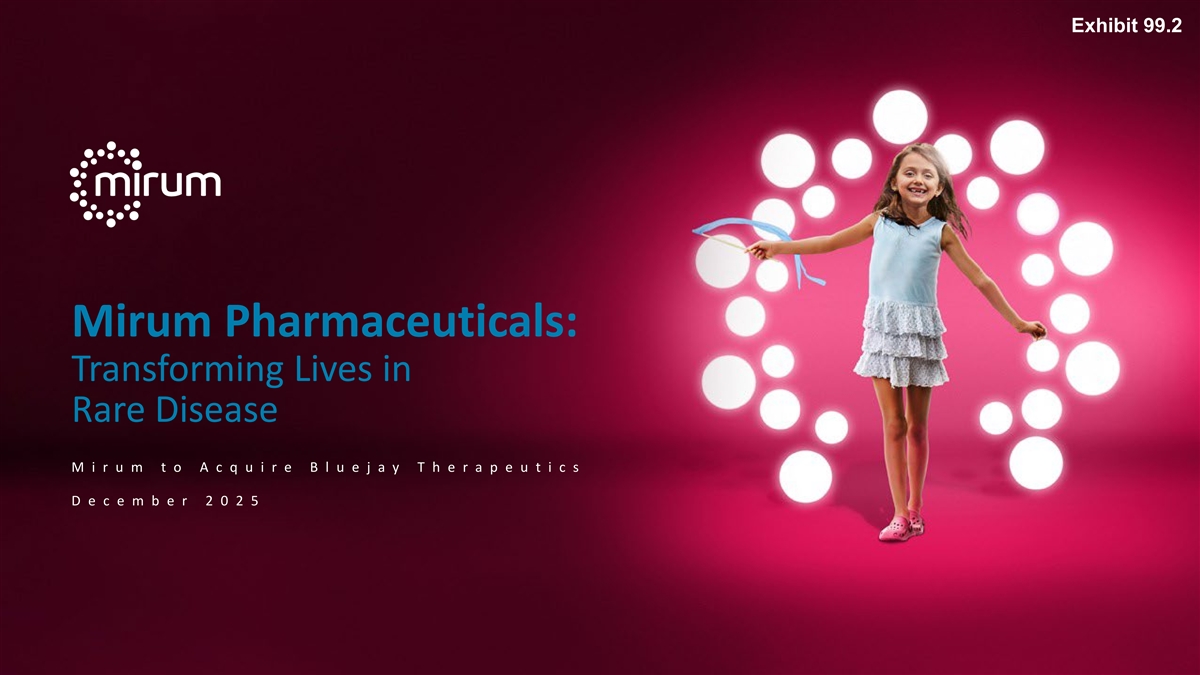 Exhibit 99.2 Mirum Pharmaceuticals: Transforming Lives in Rare Disease M iru m t o Ac q u ir e B lu e ja y T h e r ap e u t ic s D e c e m b e r 2025