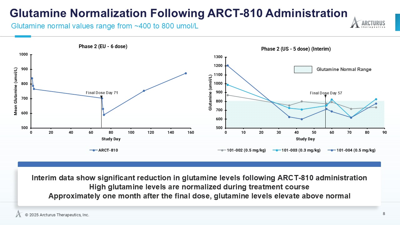 ARCT-810 significantly and consistently reduces biomarker glutamine to levels within normal range
