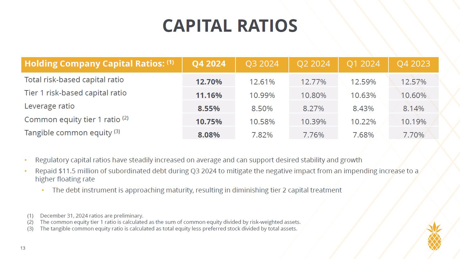 | Holding Company Capital Ratios(7): | ||||||