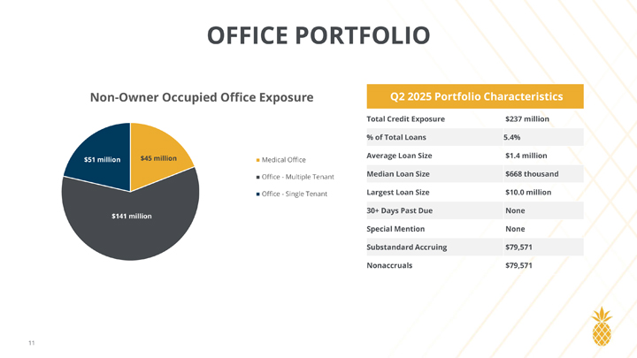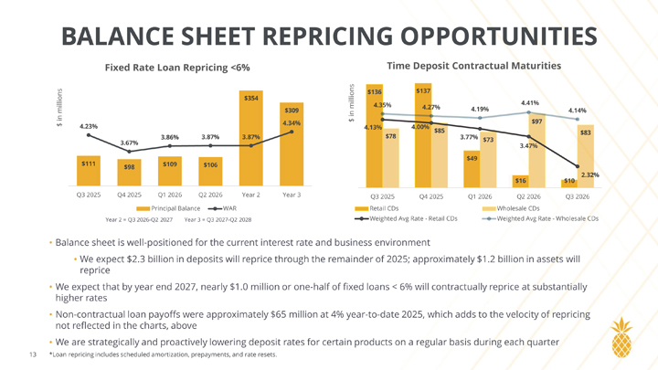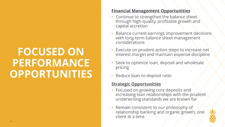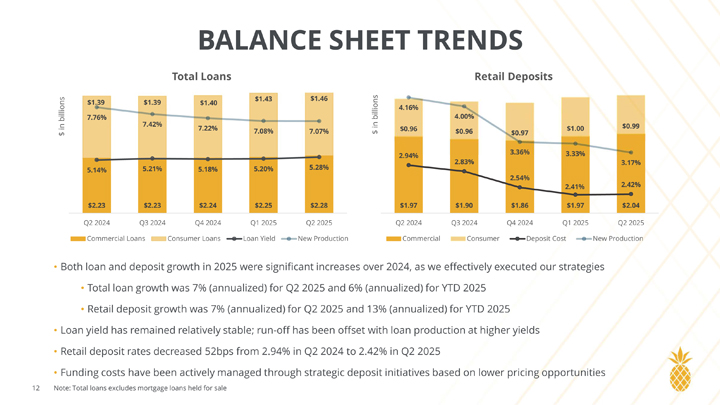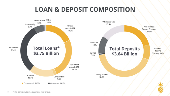 | · | 貸出総額は 37 億ドル、前年同期比 7%増(年率換算)、中核預金残高は 29 億ドル、同 7%増(年率換算)。 |