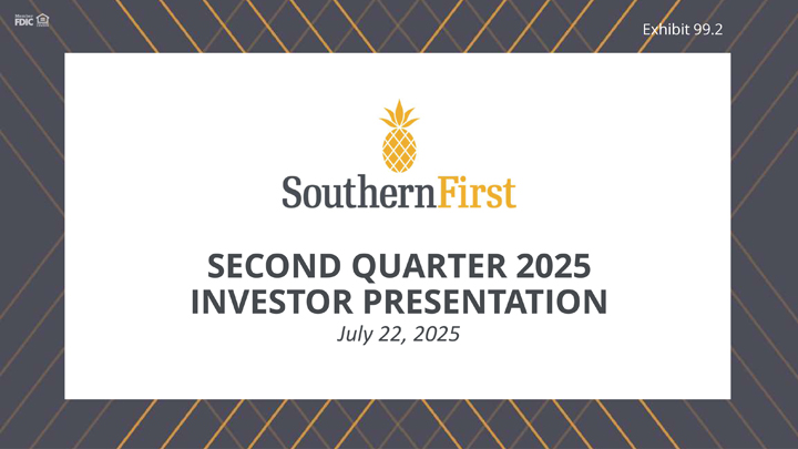 サウスカロライナ州グリーンビル、2025年7月22日 - サザン・ファースト・バンクの持株会社であるサザン・ファースト・バンクシェアーズ(NASDAQ: SFST)は本日、2025年6月30日に終了した半期決算を発表した。