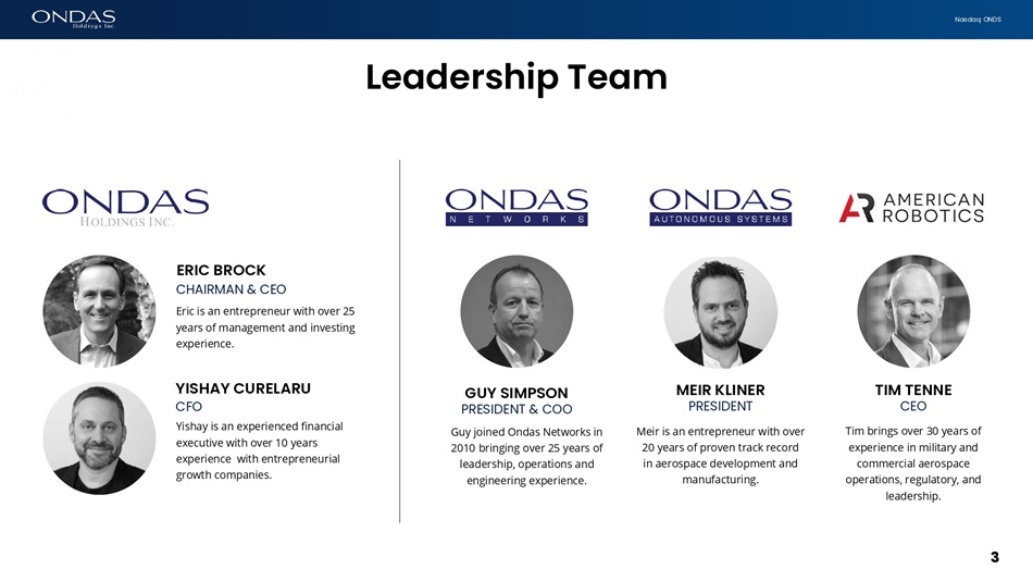| ● | オンダスネットワークス最高執行責任者のガイ・シンプソンは、2024年3月に社長に昇格。 |