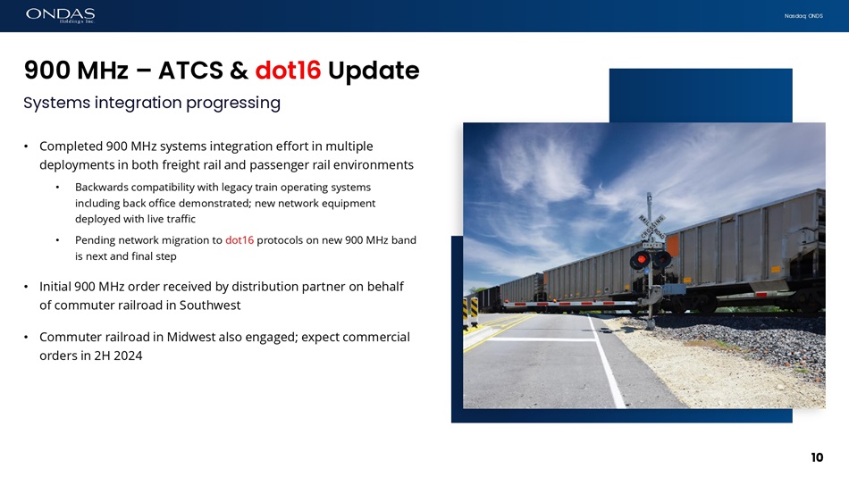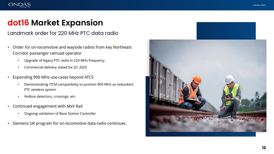 さらに、オンダスネットワークスと当社の開発パートナーが、主要な北東回廊の旅客鉄道にアップグレードされたPTCデータ無線を提供することに合意した220MHzの周波数帯域で、画期的な顧客獲得を発表できることを嬉しく思います。このPTCデータ無線機は、NEC全域で旅客鉄道、運輸鉄道、一部の貨物鉄道事業者(車載および路側アプリケーションの両方)に広く採用されるものと確信しています。この勝利は、当社のFullMAX、dot16準拠ワイヤレス・プラットフォームのユニークな柔軟性を実証するものであり、また重要なこととして、当社の対応可能な市場を拡大するものでもあります。さらに、国際鉄道市場の他のベンダーからも、このPTCデータ無線に関心が寄せられています。