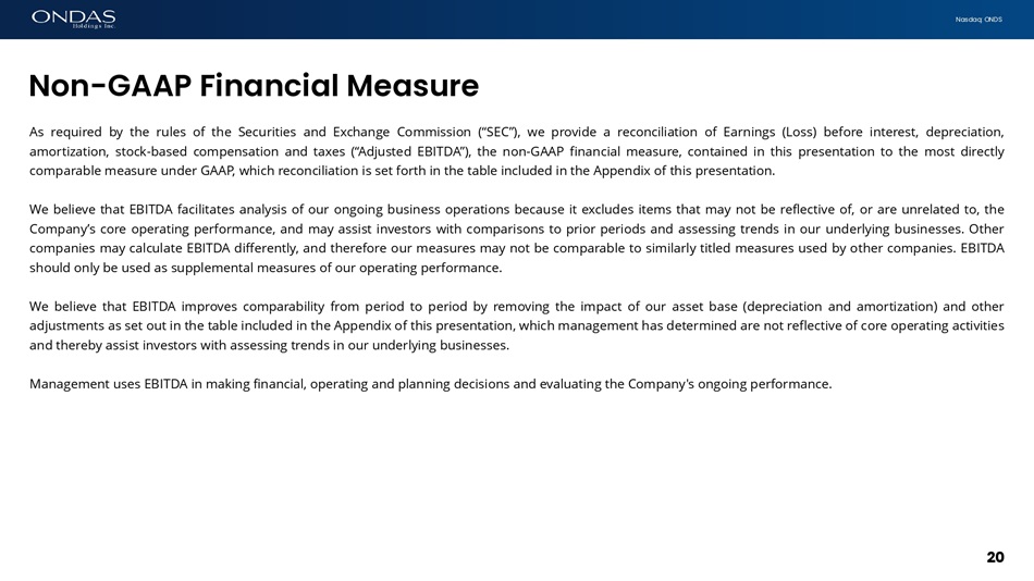 | ● | オンダスは、オンダス・オートノミー・ホールディングス社(以下「OAH」)の設立を発表した。これは、オンダスがドローン事業をグローバルに拡大するのに伴い、運営と財務の柔軟性を高めることを目的として、新たに設立されたドローン持株会社である。 |