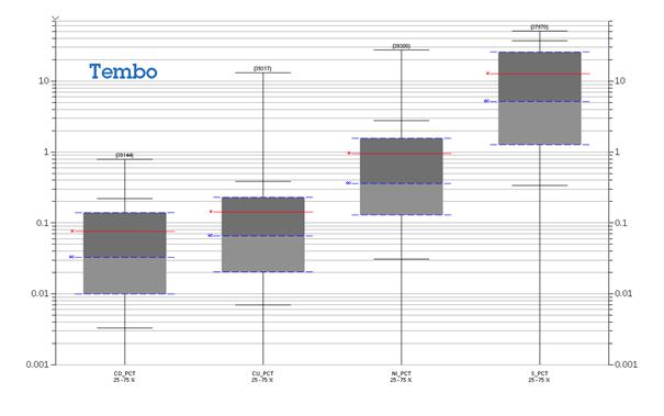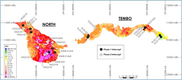 | TEMBO ZONE – Massive Sulfide plus Ultramafic | ||||||||