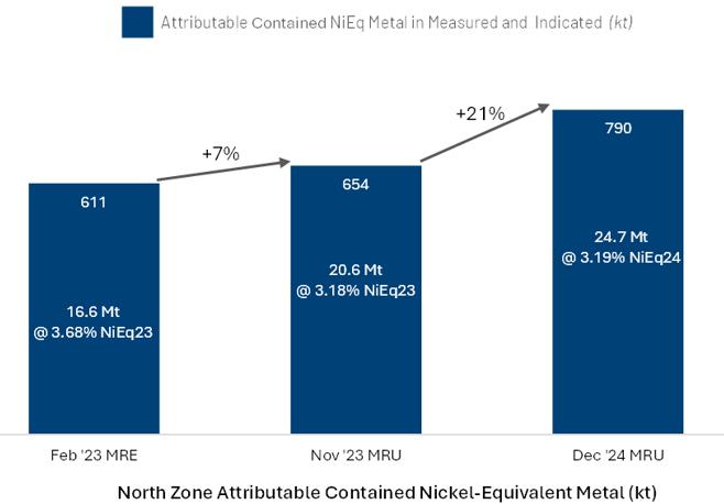 Figure 3: Comparison of overall Measured and Indicated attributable contained nickel-equivalent metal in the North Zone between the February 2023 Mineral Resource Estimate, the November 2023 Mineral Resource Update and the December 2024 Mineral Resource Update.